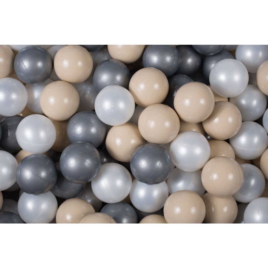 MeowBaby® SADA plastové loptičky do suchého bazéna Ø7cm - béžová, biela perleťová, strieborná
