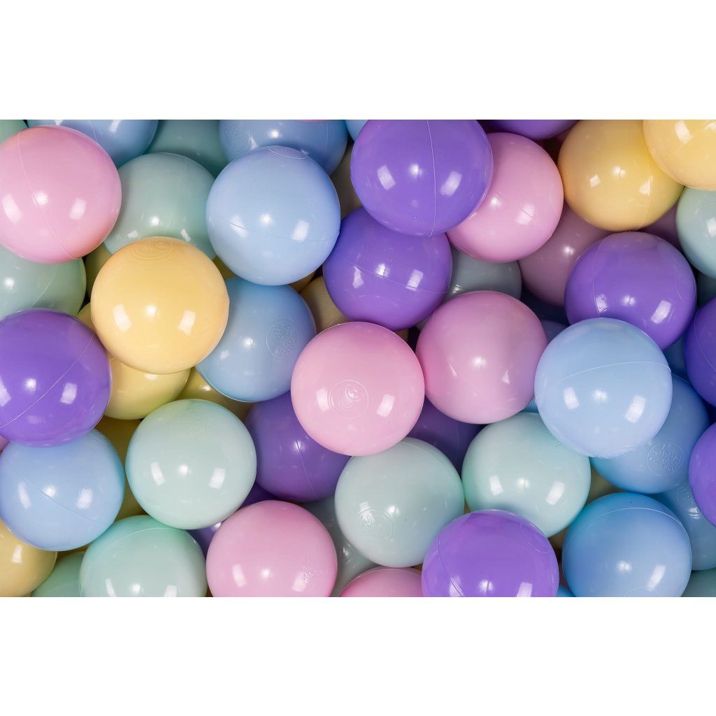 MeowBaby® SADA plastové loptičky do suchého bazéna Ø7cm - bledomodrá, mätová, bledoružová, žltá, fialová