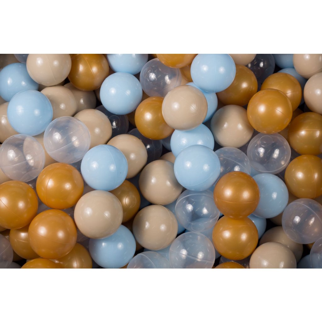 MeowBaby® SADA plastové loptičky do suchého bazéna Ø7cm - zlatá, bledomodrá, béžová, transparentná
