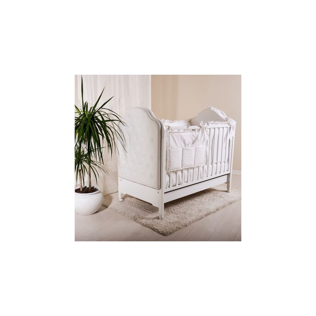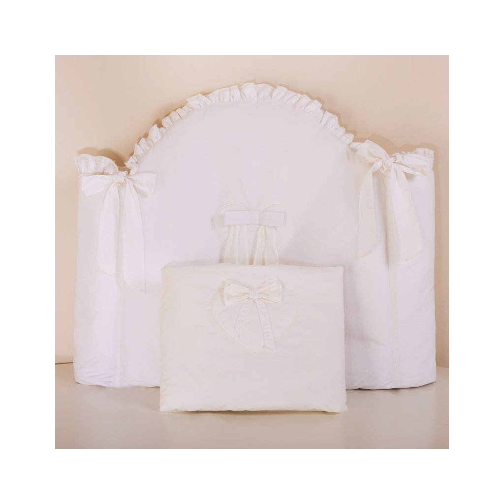 Romantický a elegantný set s volánikmi do detskej postieľky Nanán Bon bon. Mantinel a obliečka sú zdobené elegantnou mašľou. Textilné sety do postieľky talianskej značky Nanán sú vysoko kvalitné z veľmi príjemného materiálu zamerané na precízne spracovanie každého detailu. Set obsahuje: mantinel, paplón, obliečku na paplón a obliečku na vankúšik.