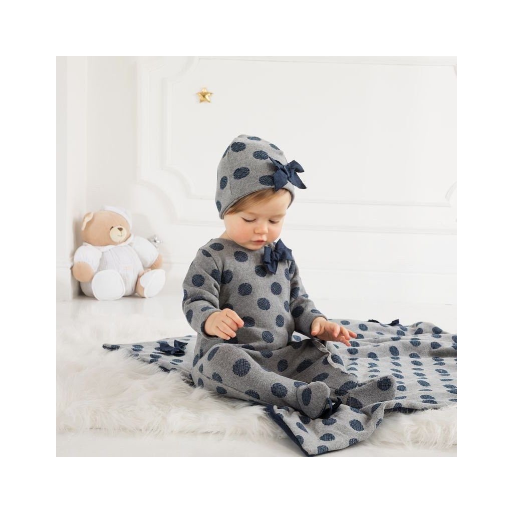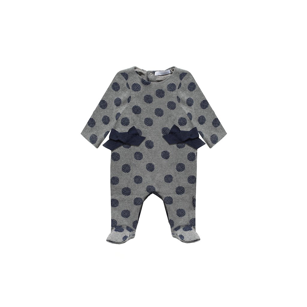 Nanán bodkované zimné dupačky s mašličkami – šedé, teplé a pohodlné
