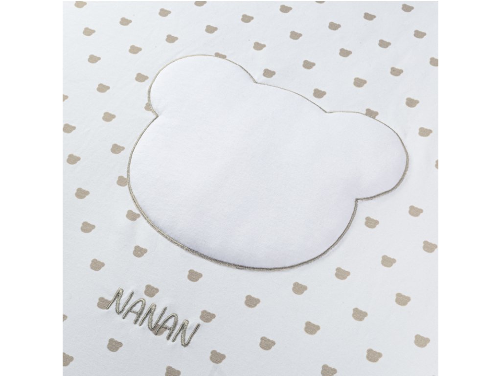 Bavlněná bílá přikrývka z extra měkké 100% bavlny zdobená potiskem roztomilých béžových medvídků a centrální výšivkou plyšového medvídka. Extra měkká deka zahalí dítě do pocitu něhy a měkkosti. Díky své velikosti je ideální pro novorozence a hodí se buď do kočárku, nebo do postýlky. K dispozici ve 3 barvách: béžové, růžové a šedé.