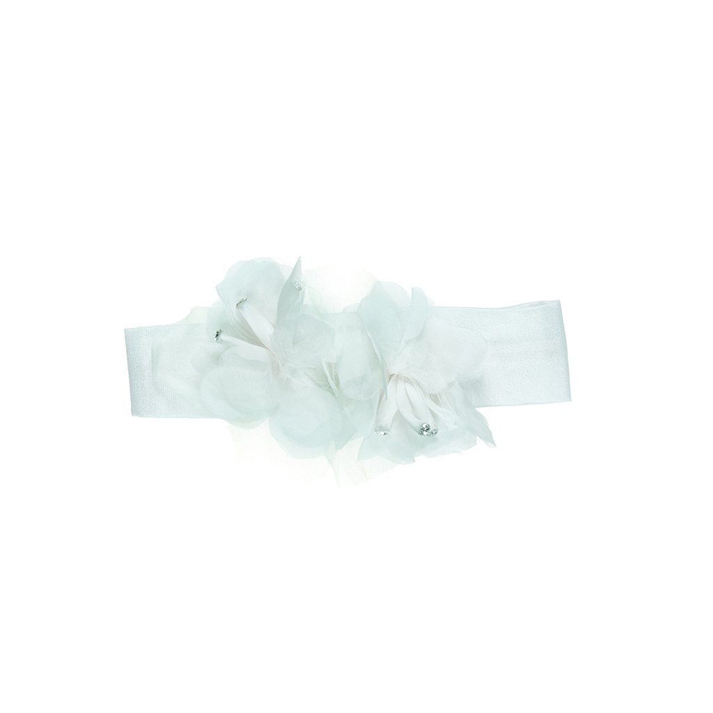 Dodajte outfitu vášho bábätka exkluzívny šmrnc s bielou čelenkou Nanán s kamienkami Swarovski. Luxusné detaily a jemné materiály zabezpečia pohodlie aj štýlový vzhľad na špeciálne príležitosti. Posledné kusy skladom, limitovaná edícia.
