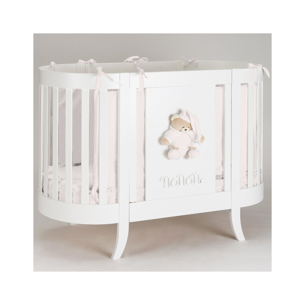 Elegantná detská oválna postieľka s matracom s dekoráciou medvedíka prináša to správne čaro do detskej izbičky. Postieľka je navrhnutá a vyrobená v Taliansku, čo zaručuje vysokú kvalitu a prepracovanosť. Táto kvalitná talianska postieľka je masívna a pevná, pričom pôsobí veľmi elegantne a doplnením ostatných doplnkov kolekcie Puccio ružová vytvoríte dieťatku rozprávkovú detskú izbičku.