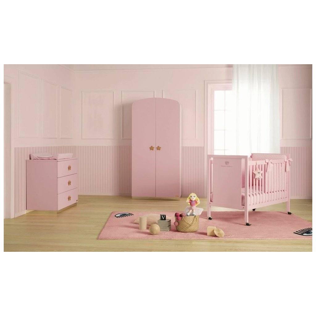 Kvalitná elegantná detská postieľka od prestížnej talianskej značky Nanán z kolekcie módnej ikony Chiara Ferragni. Talianska postieľka s možnosťou nastavenia výšky matraca. Súčasťou postieľky sú kolieska s brzdou pre lepšiu manipuláciu a presúvanie.