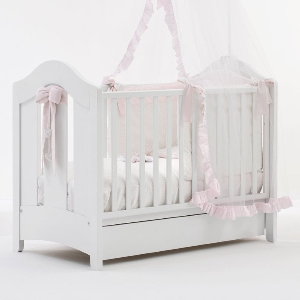 Romantická postieľka Tato je masívna a pevná, svojim dizajnom pôsobí veľmi elegantne. Postieľka má v spodnej časti priestrannú zásuvku. Rošt nie je polohovateľný, avšak postieľka má posuvnú bočnicu smerom nadol, čím získa mamička ľahký prístup k bábätku. Každá časť kolekcie Nanan je vyrobená s ohľadom na bezpečnosť a pohodlie bábätka, hrazdičky sú umiestnené tak, aby sa predišlo akémukoľvek nebezpečenstvu.