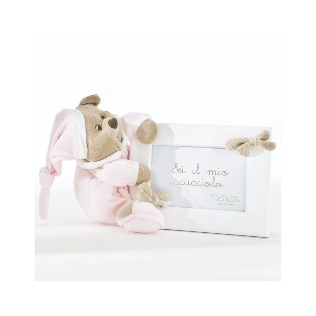 Uchovajte si najvzácnejšie spomienky na vaše bábätko v nádhernom fotorámiku Nanán s plyšovým medvedíkom Puccio v jemnej bledoružovej farbe. Tento luxusný doplnok je dokonalým darčekom pre novorodenca a zároveň štýlovou dekoráciou do detskej izby. 💕