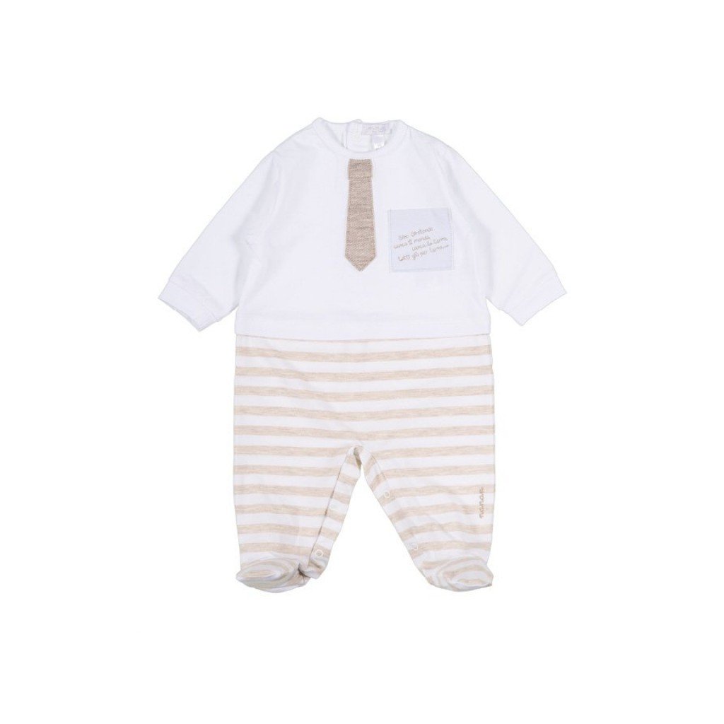 Štýlové dupačky pre malého džentlmena! 🎀👶 Dupačky Nanán Rotolino s kravatou v jemnej béžovej farbe sú vyrobené z mäkkého a priedušného materiálu, ktorý je šetrný k citlivej detskej pokožke. Perfektná voľba na špeciálne príležitosti aj bežné nosenie. 🤍