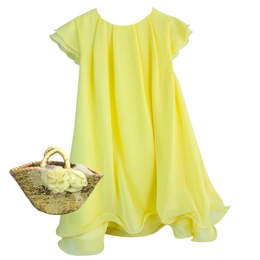 Elegantné sviatočné letné šaty pre malú slečnu. V týchto šatách bude malá slečna neprehliadnuteľná a dokonalá princezná! Šaty majú dve podšívky, jednu tylovú a jednu z čistej bavlny. Veľmi príjemný ľahký materiál. K týmto šatám určite odporúčame krásnu tylovú čelenku v žltej farbe a rozkošnú kabelku.