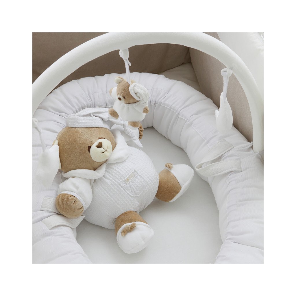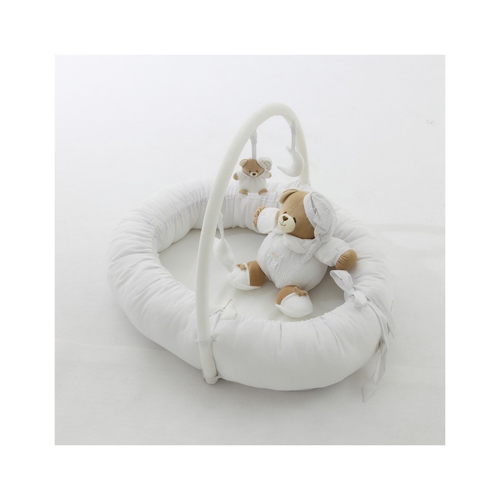 Novinka - Nanán spacie hniezdo z kolekcie Tato si hneď zamilujete. Je ďalším produktov z kolekcie Tato vďaka čomu si vytvoríte kompletnú detskú izbičku Tato. Súčasťou hniezda je aj hrazdička s odnímateľnými hračkami, ktoré stimulujú motorickú aktivitu bábätka. Toto multifunkčné hniezdo ponúka bezpečné a príjemné miesto pre vaše dieťa na spanie, odpočinok, hry a maznanie. Ľahké a prenosné hniezdo umožňuje ľahký presun z izby do izby, pri návšteve rodiny alebo na dovolenke.