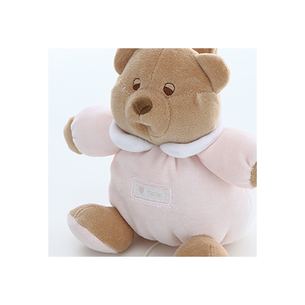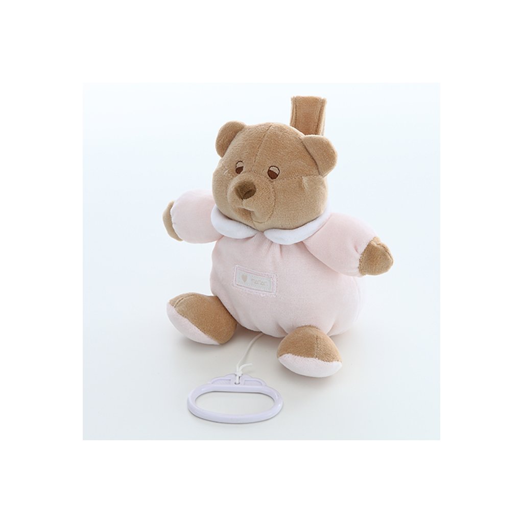 Rozkošný spoločník na prechádzky aj pokojný spánok! 🎶💕 Hrací medvedík Nanán – Macko Puccio v nežnej ružovej farbe vydáva upokojujúcu melódiu, ktorá pomáha bábätku zaspať a cítiť sa bezpečne. Ideálny na upevnenie na kočík, postieľku či autosedačku. 🧸✨