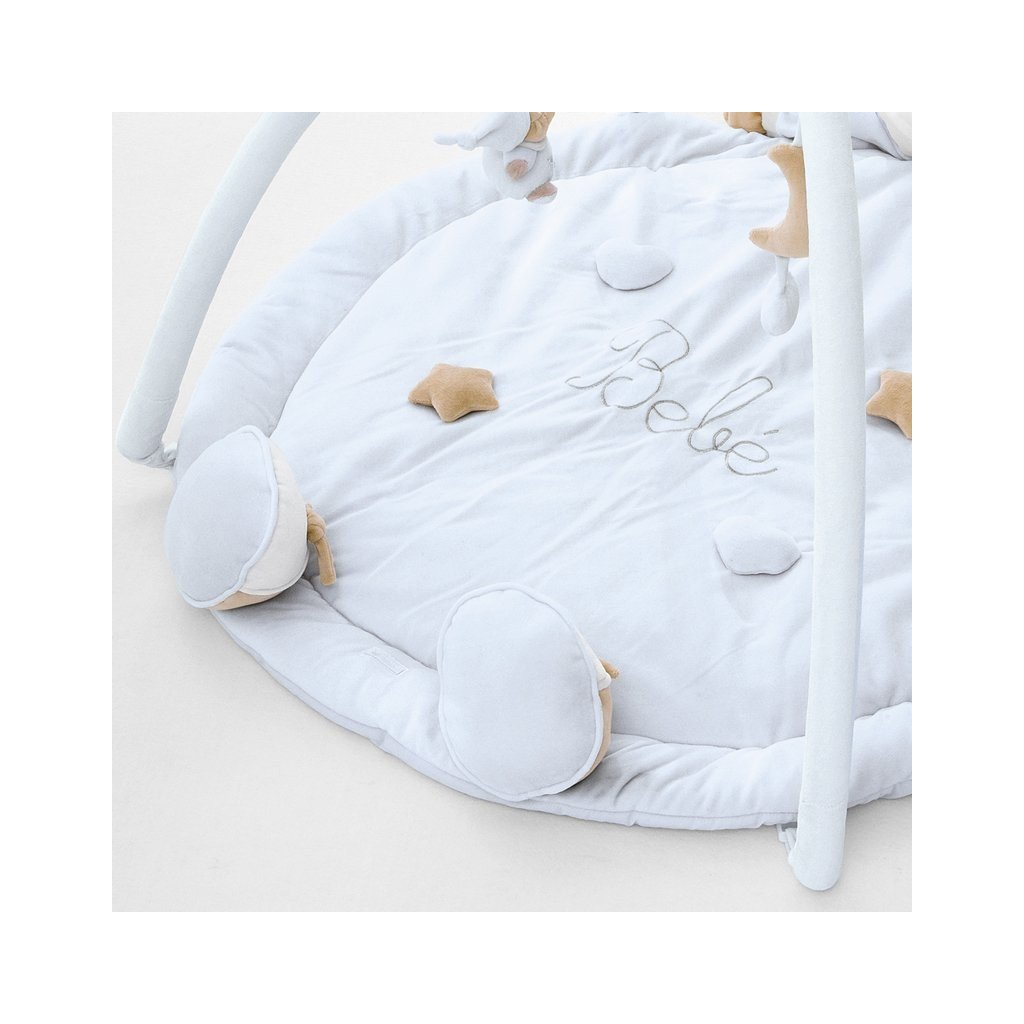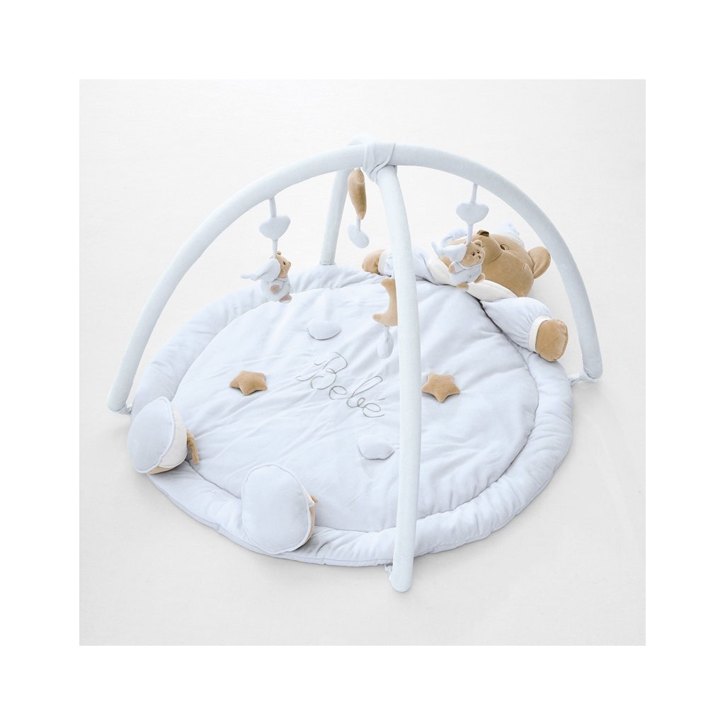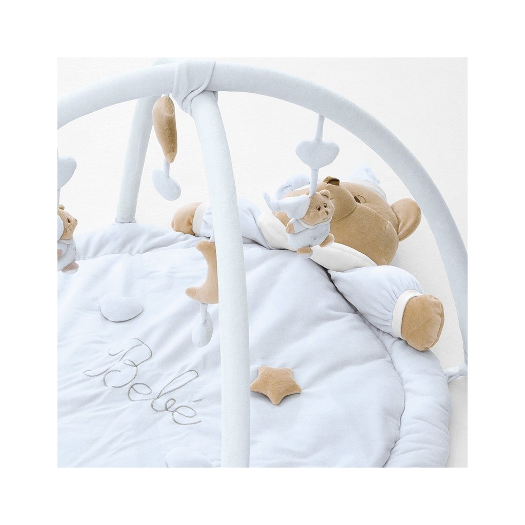 Mäkučká hracia deka, ktorá rozvíja zmysly a pohybové schopnosti bábätka! 🧸💙 Hracia deka s hrazdou Nanán – Macko Puccio v nežnej modrej farbe ponúka útulné a bezpečné prostredie na hranie. Závesné hračky stimulujú zrak, sluch a hmat, zatiaľ čo pohodlný materiál zabezpečuje maximálny komfort. 🎠✨