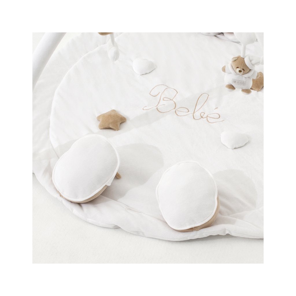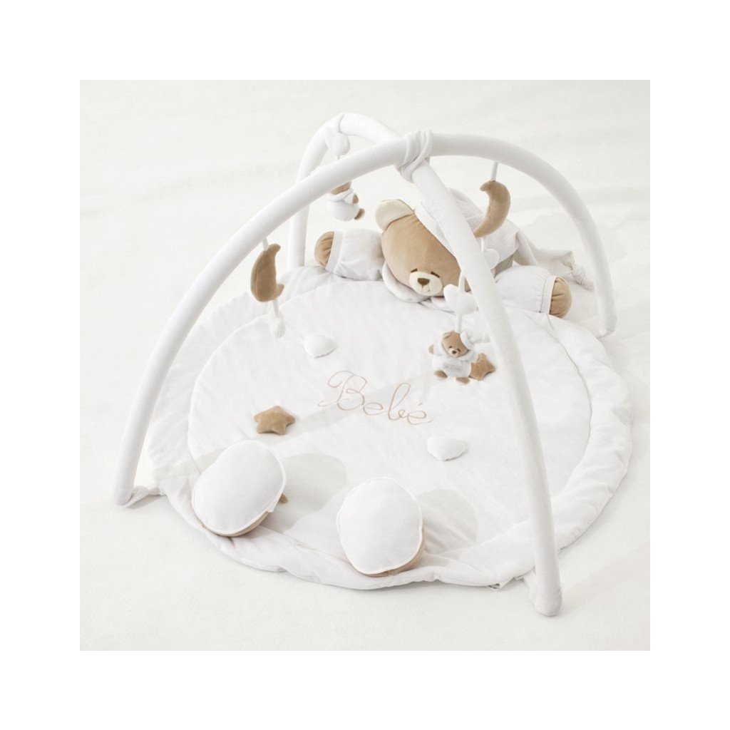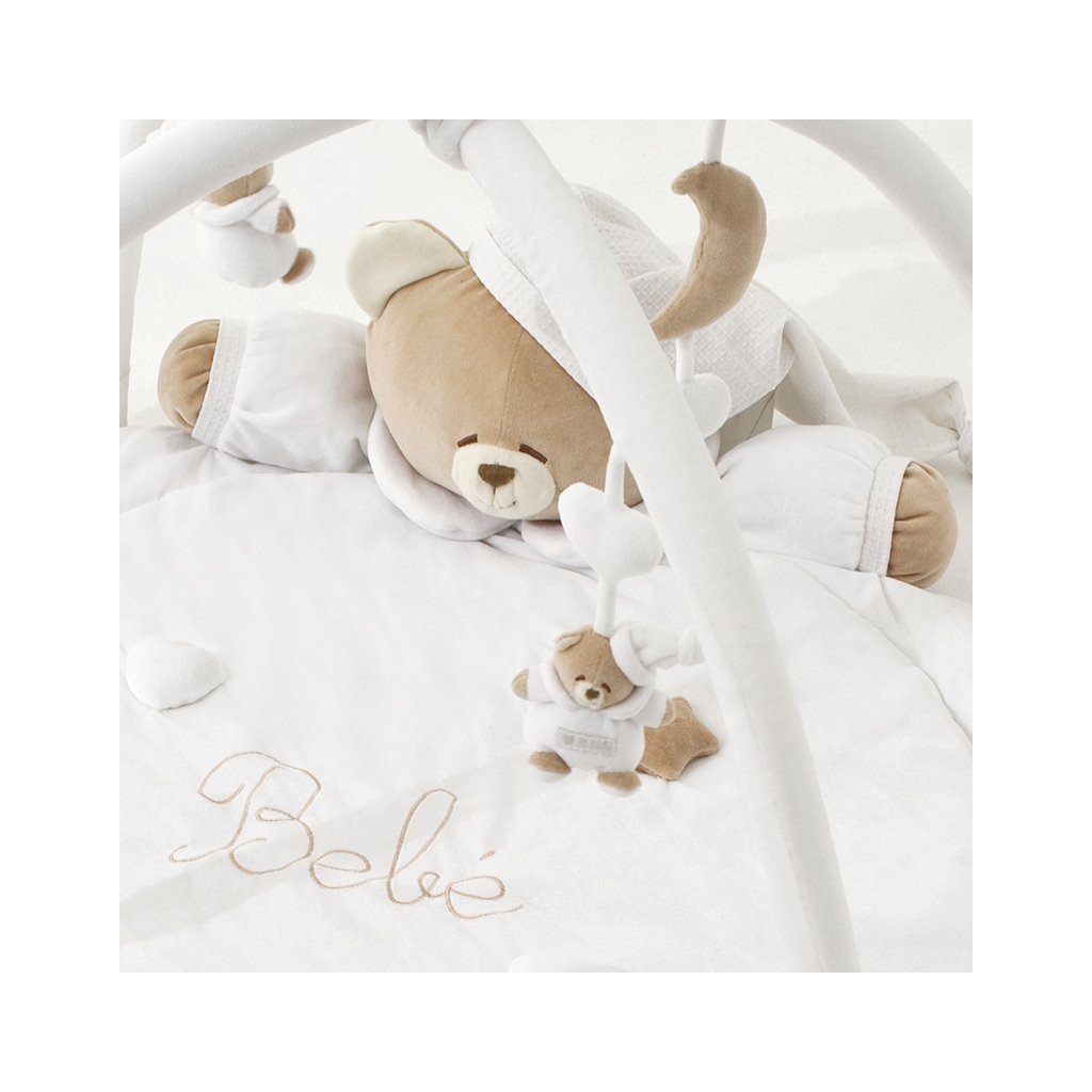 Mäkučká hracia deka, ktorá rozvíja zmysly a motoriku vášho bábätka! 🧸🤍 Hracia deka s hrazdou Nanán – Macko Tato v nadčasovej bielej farbe ponúka bezpečné a útulné prostredie na hranie. Závesné hračky stimulujú hmat, zrak a sluch, zatiaľ čo príjemný materiál zaisťuje maximálny komfort. 🎠✨