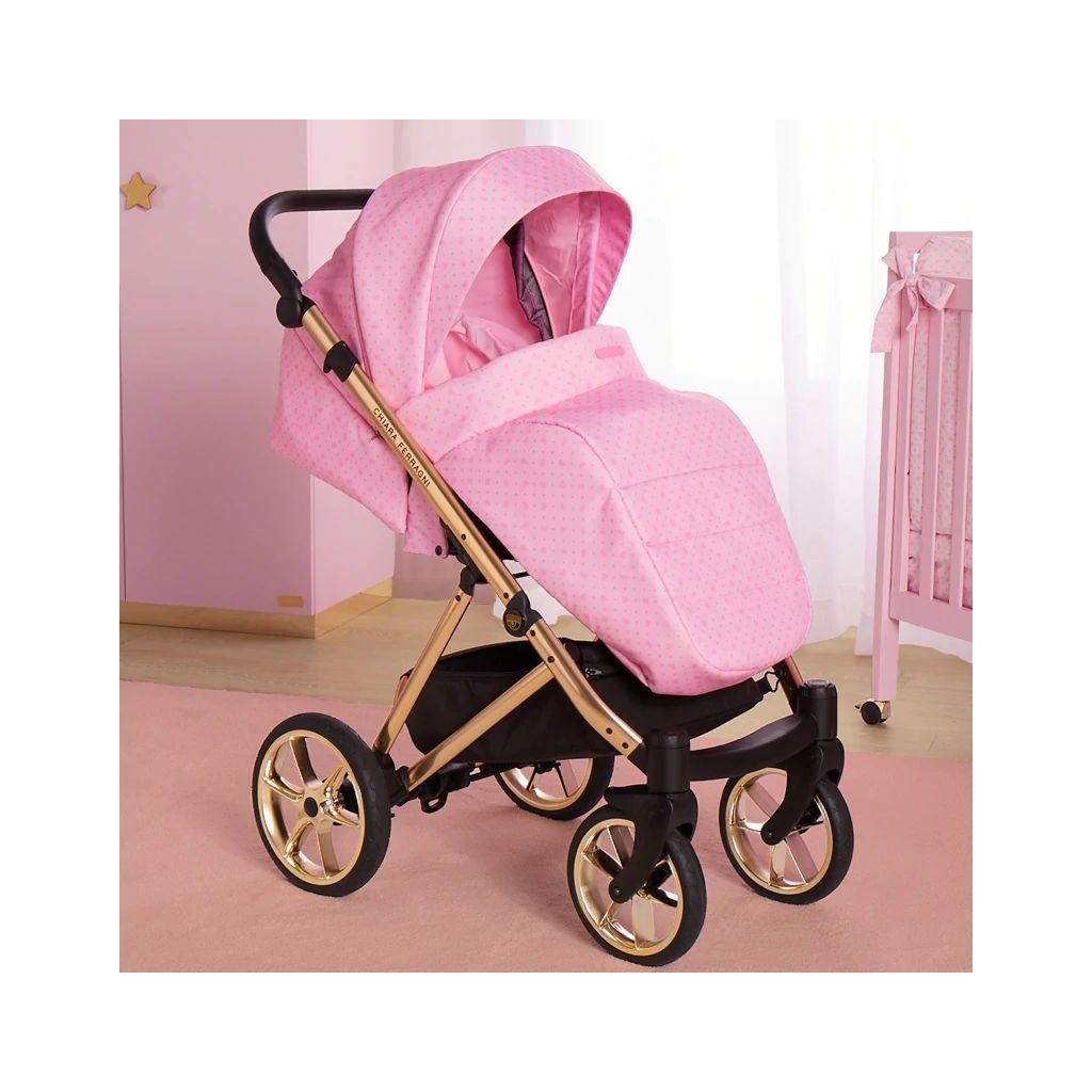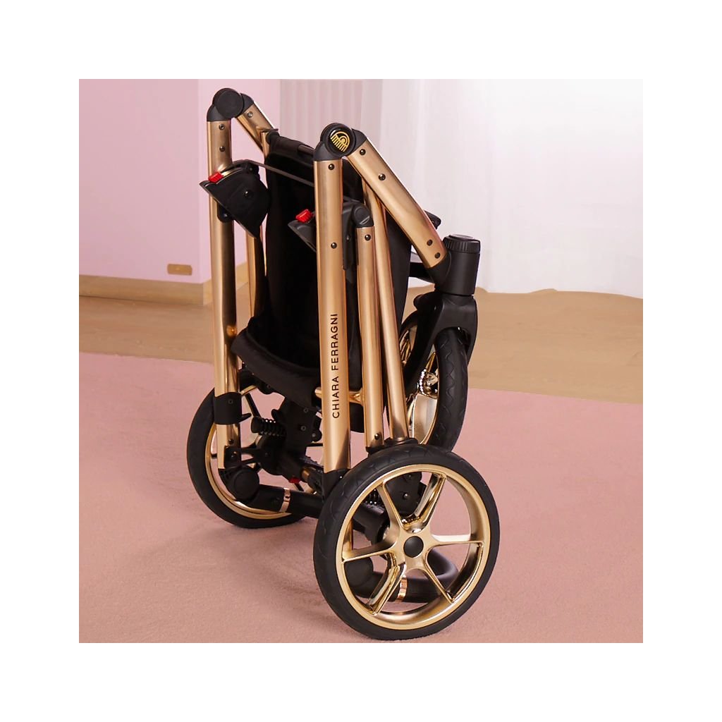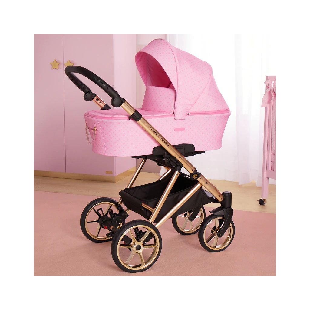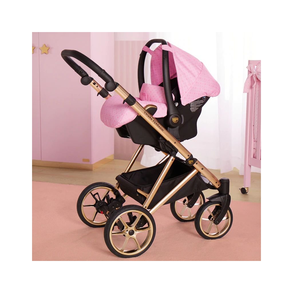 Nanán luxusný kočík Chiara Ferragni – ružový so zlatým podvozkom