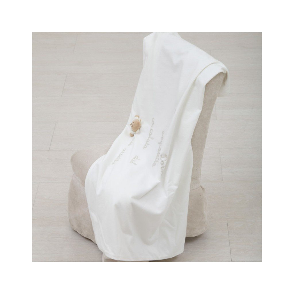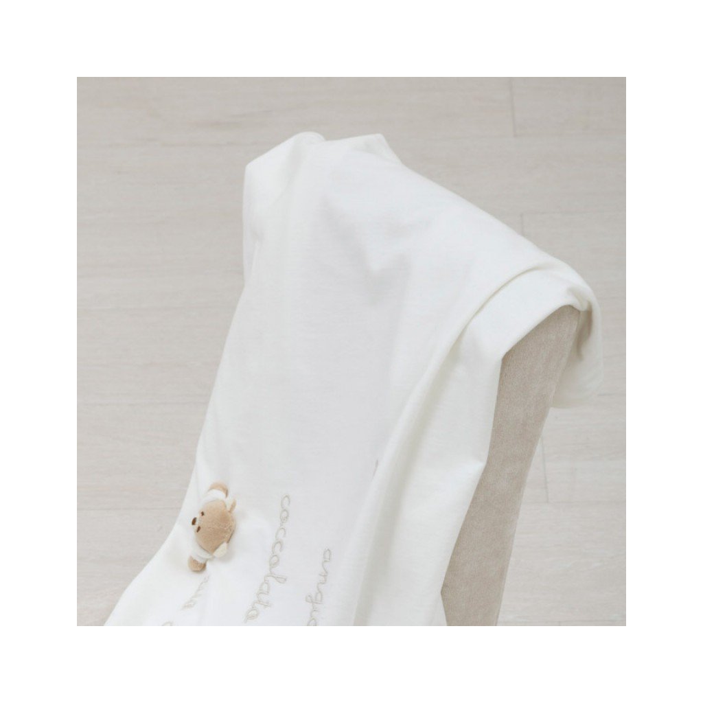 Kvalitná hebká bavlnená deka pre bábätko s volánikmi a dekoráciou nežného medvedíka kolekcie Tato od talianskej prestížnej značky Nanán. Na výrobu je používaná luxusná...