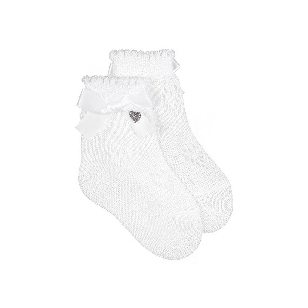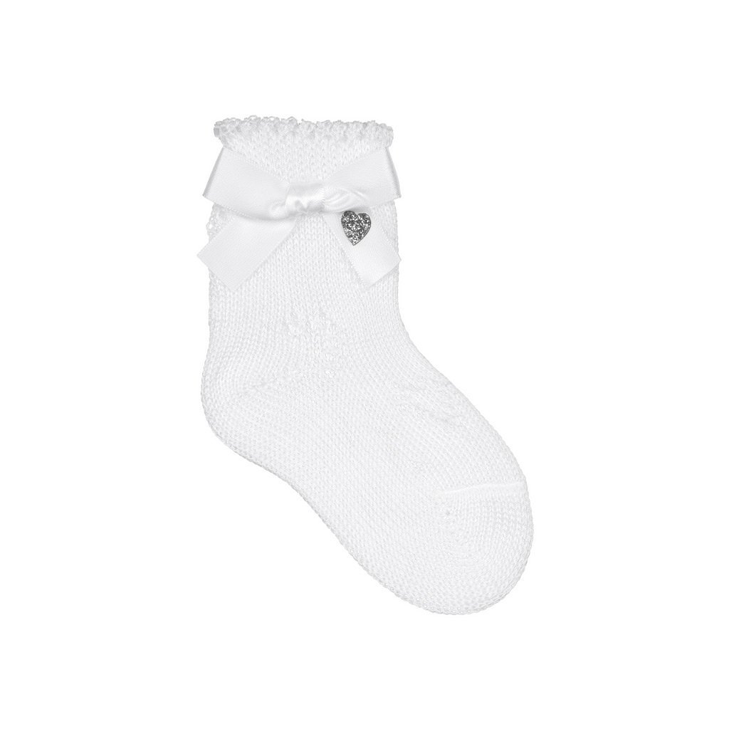 Nanán luxusné biele ponožky s mašličkou a srdiečkom pre bábätko – biele