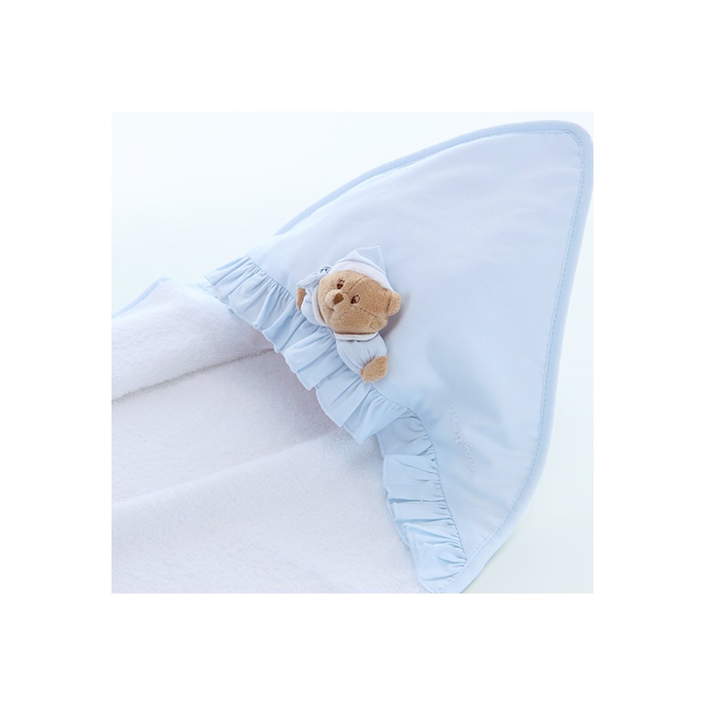 Mäkučká osuška, ktorá zahalí vaše bábätko do jemnosti a tepla! 🛁 Detská osuška Nanán Puccio v nežnej modrej farbe je vyrobená z extra savého a šetrného materiálu, ktorý chráni citlivú pokožku dieťatka po kúpaní. Perfektný doplnok do každej kúpeľne! 💙