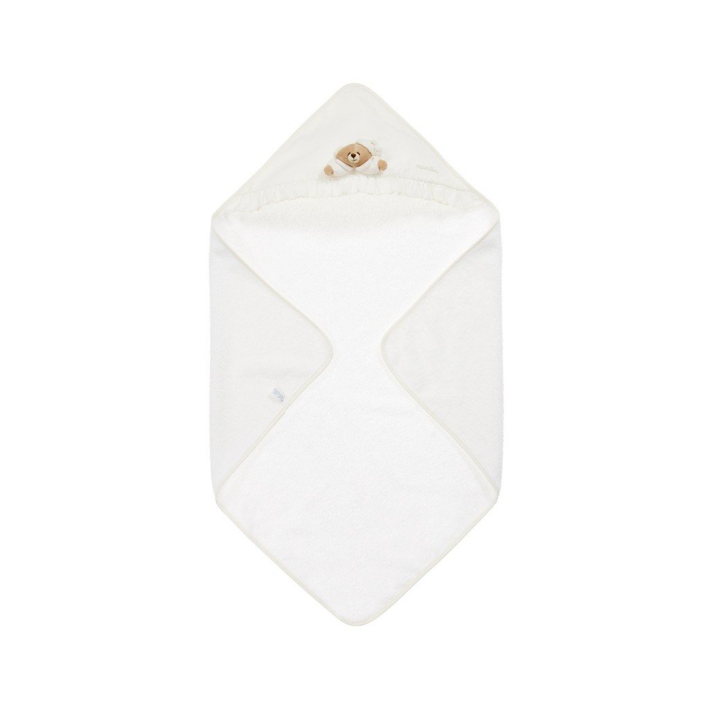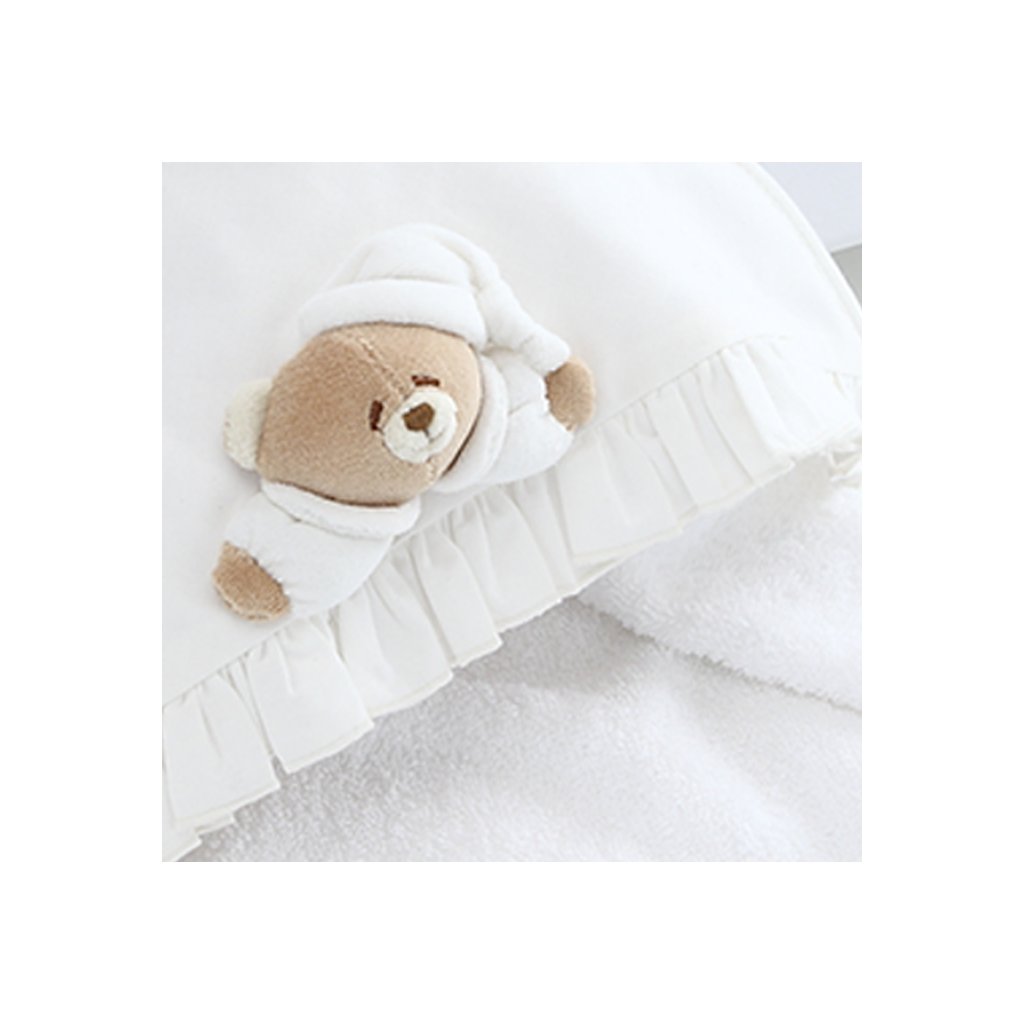 Osuška je zdobená obrysom medvedíka Tato, ktorý dodáva produktu dotyk nežnosti.
