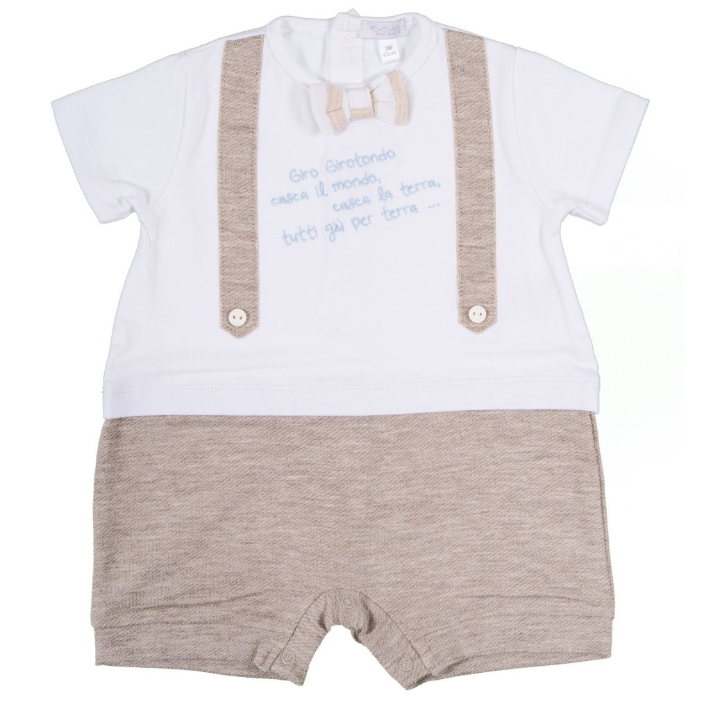 Doprajte svojmu bábätku nežný dotyk luxusu a maximálne pohodlie s béžovým overalom Nanán Rotolino s trakmi. 🤍 Tento elegantný a praktický overal je ideálny na bežné nosenie aj špeciálne príležitosti.