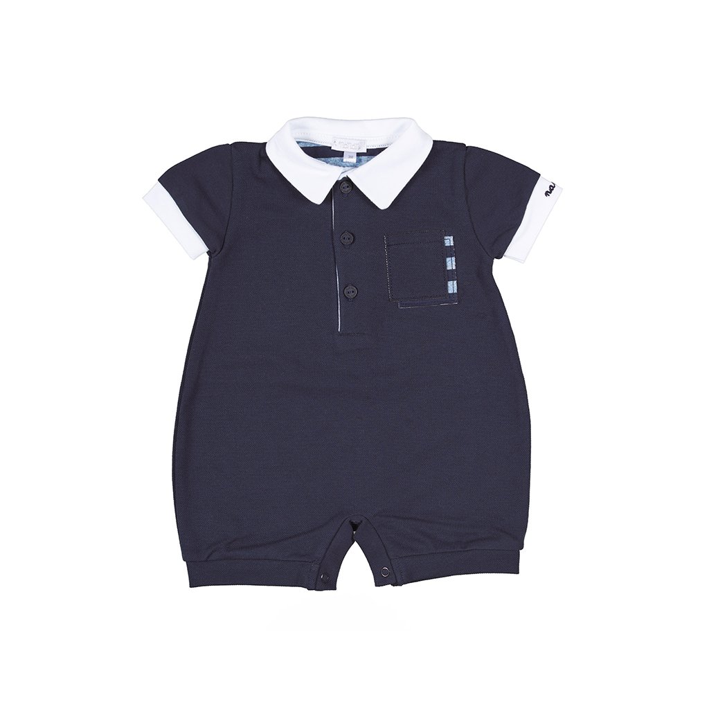 Doprajte svojmu bábätku luxusnú eleganciu a pohodlie s tmavomodrým overalom Nanán s golierom. 🎩 Tento štýlový a jemný kúsok je ideálny na špeciálne príležitosti aj každodenné nosenie.