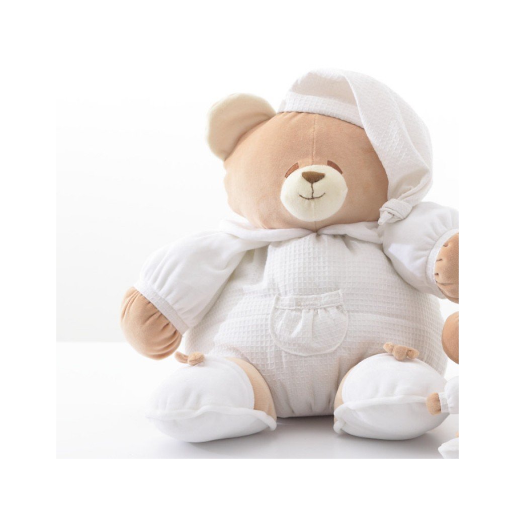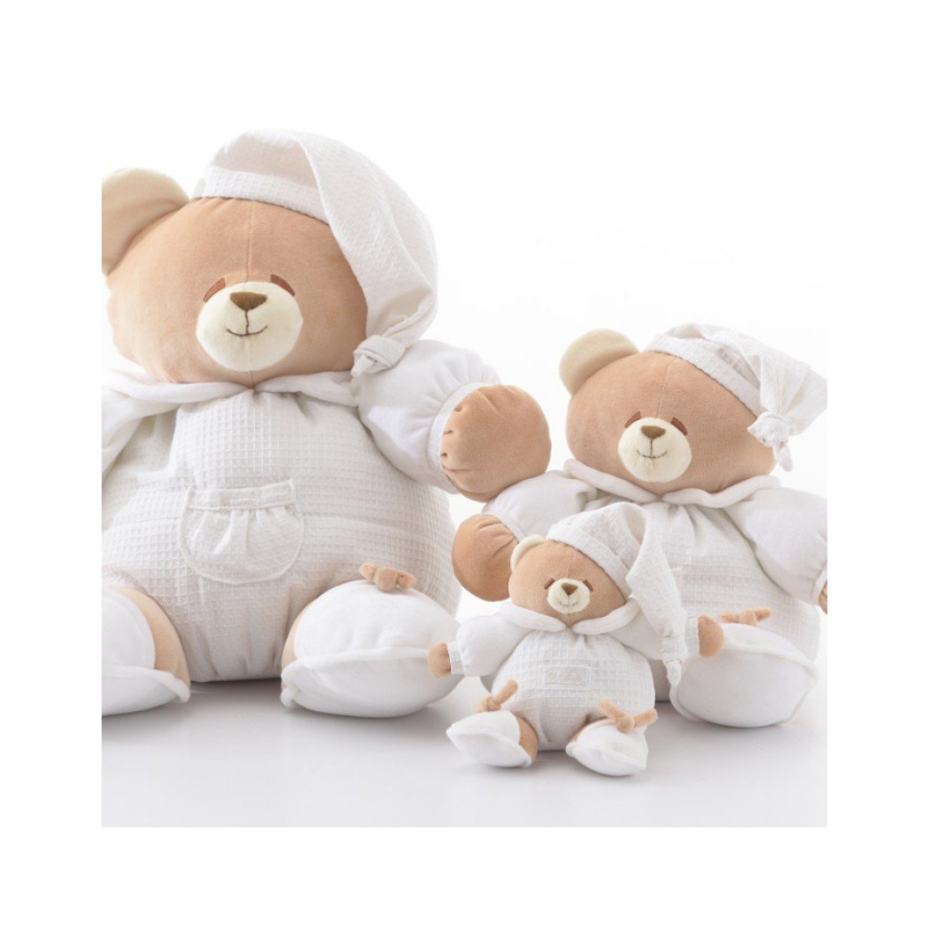 Nežný plyšový medvedík z kolekcie Tato je mäkkým spoločníkom vášho dieťatka a bude ho sprevádzať počas celého dňa a noci. Slúži aj ako krásna dekorácia v detskej izbičke. Dostupný v troch veľkostiach.