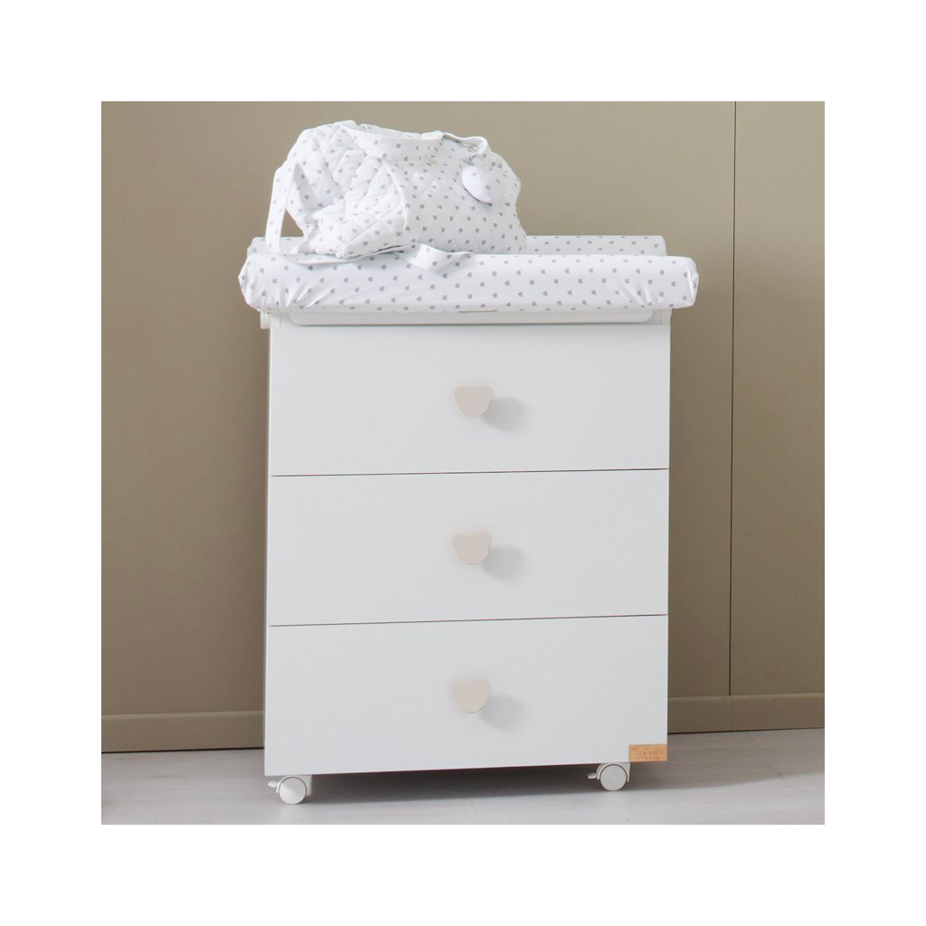 Pult je veľmi pevný a umožňuje pohodlné prebaľovanie až do 12 mesiacov bábätka. Na vrchnej časti pultu je mäkká PVC podložka v bielej farbe, ktorá je vybavená dvoma vyvýšenými bezpečnostnými stranami. PVC prebaľovacia podložka je na pocit chladná, preto odporúčame dokúpiť si bavlnený alebo froté poťah, resp. bavlnené mušelínové plienky, ktoré sú z príjemných a hrejivých materiálov, čím sa zabezpečí dokonalý komfort pri prebaľovaní bábätka.