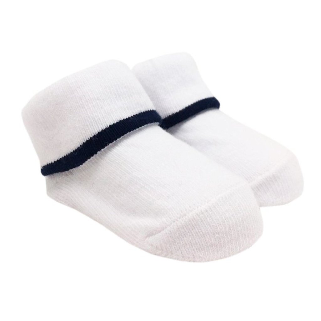 Novorodenecké ponožky z mäkkej vysoko kvalitnej bavlny. Zabalené k darčekovom balení. Ideálne ako darček. Veľkosť 0-6 mes.