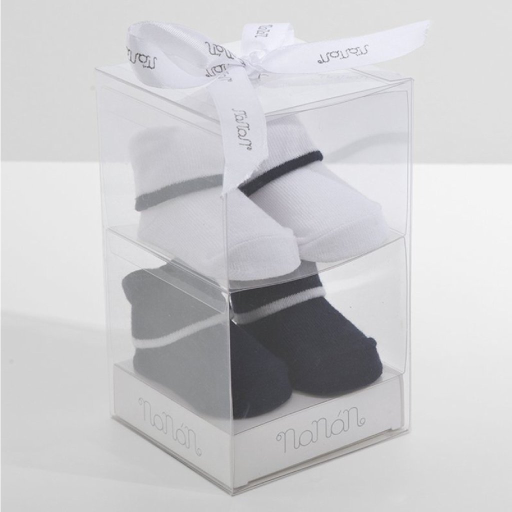 Tieto ponožky sú vhodné od narodenia bábätka. Sú vyrobené z mäkkej, vysoko kvalitnej bavlny, aby nedošlo k dráždeniu citlivej pokožky bábätka.  Sú ideálnym darčekom, nakoľko sú zabalené v elegantnej priesvitnej krabičke Nanán.