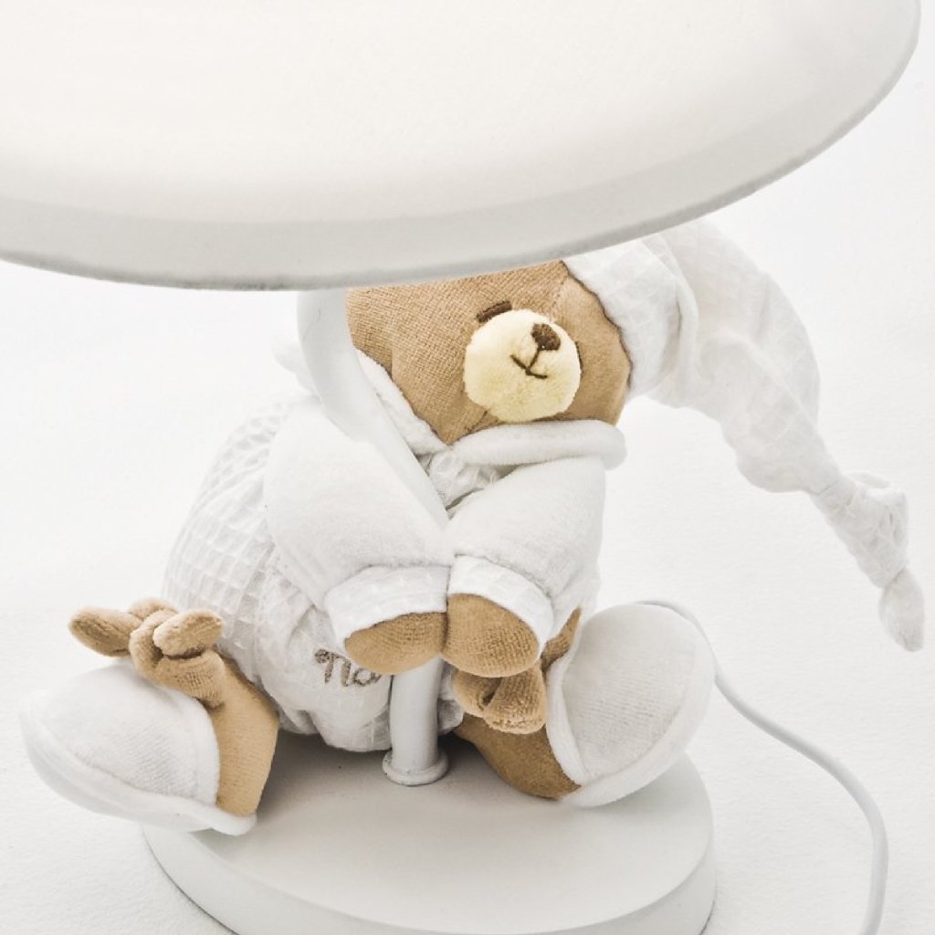 Elegantné osvetlenie pre ideálnu detskú izbičku! 💡🤍 Stolná lampa Nanán s medvedíkom Tato v neutrálnej bielej farbe je dokonalým doplnkom, ktorý vytvára pokojné osvetlenie a dodáva izbičke šarm. Roztomilý medvedík Tato zaisťuje, že lampa bude nielen funkčná, ale aj štýlová. 🧸✨