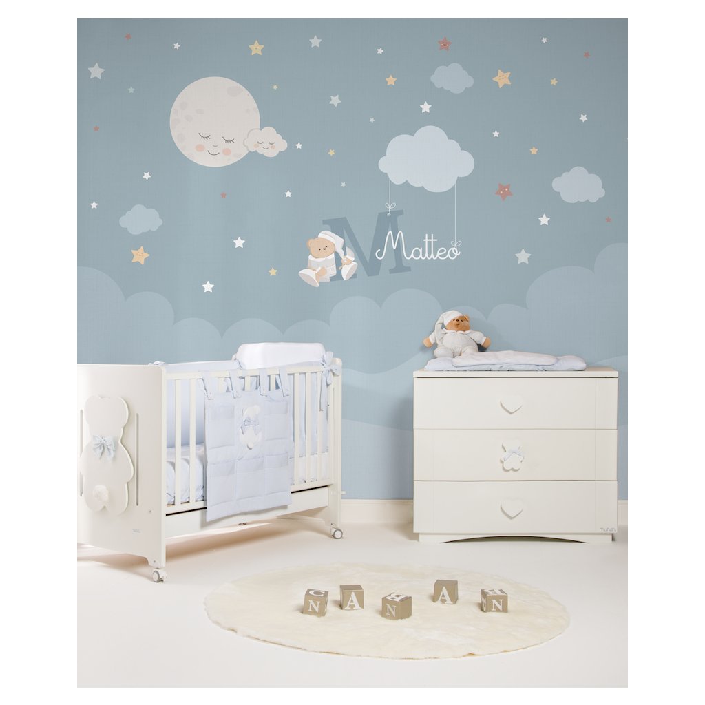 Elegantná nanán tapeta na mieru s medvedíkom Tato vo hviezdach. Roztomilá tapeta s medvedíkom, ktorý sprevádza detičky do postieľky a celú noc ich stráži.