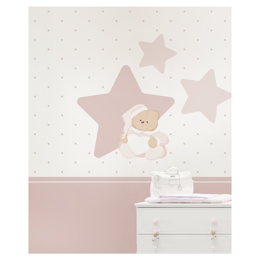 Romantická tapeta, ktorá dodá izbičke krásu a eleganciu. Kamarát Puccio stráži detské sny. Tapetu je možné personalizovať s menom dieťatka. Tapeta je vyrobená na mieru pre zákazníka.