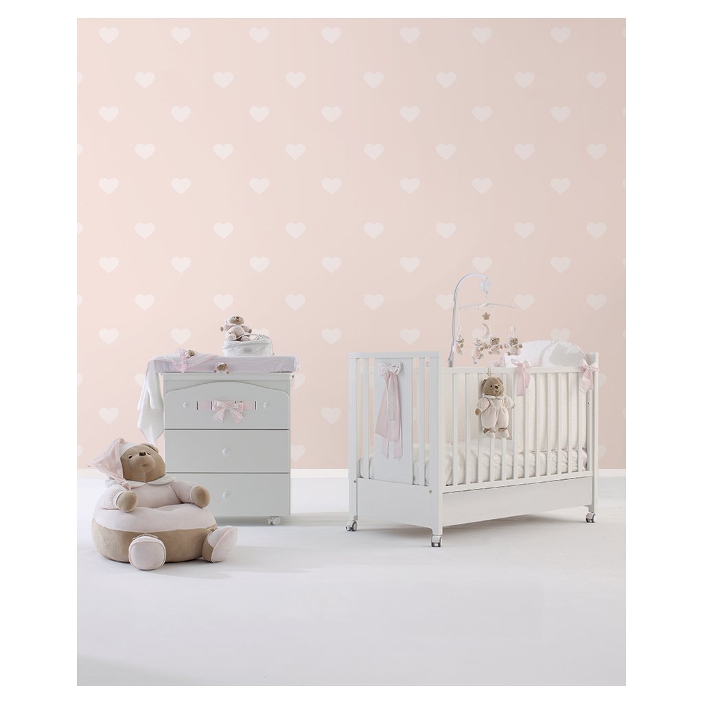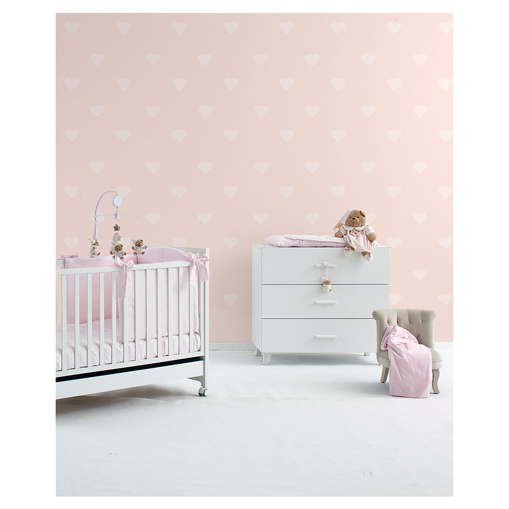 Krásna srdiečková tapeta, ktorá dodá izbičke krásu a eleganciu. Dostupná v 4 farbách: ružová, béžová, modrá a bledomodrá