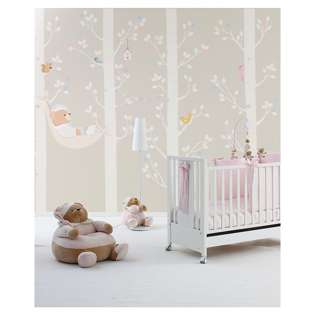 Elegantná nanán tapeta na mieru s medvedíkom Tato vo hviezdach. Roztomilá tapeta s medvedíkom, ktorý sprevádza detičky do postieľky a celú noc ich stráži.