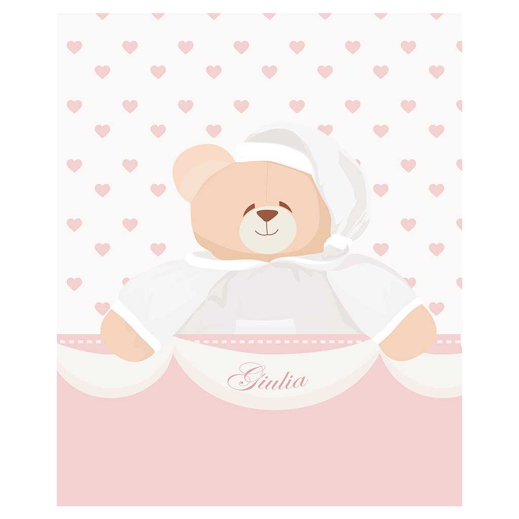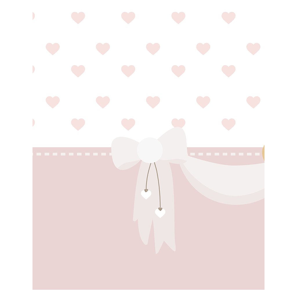 Roztomilá Nanán tapeta na mieru s medvedíkom Tato, ktorý je obklopený srdiečkami. Tapeta dodá detskej izbičke to správne čaro detského kráľovstva.