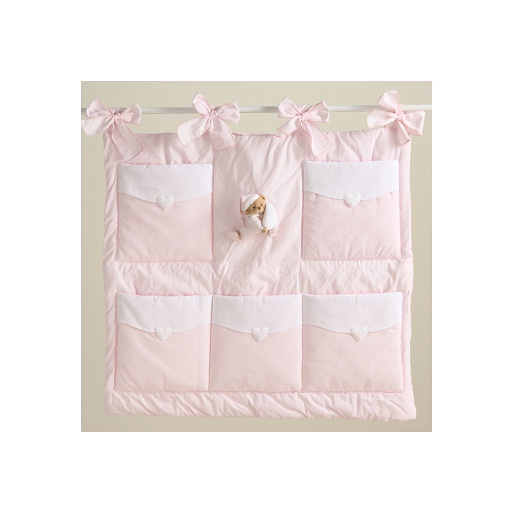 Nanán závesný organizér na postieľku s medvedíkom Puccio ružový