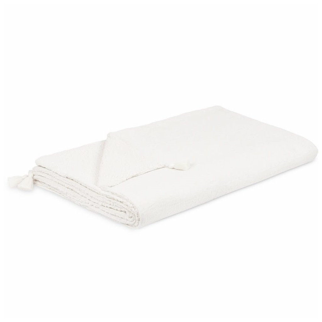 Obojstranná mušelínová deka - prehoz biela je útulným doplnkom interiéru, ale aj hrejivou pokrývkou na chladnejšie večery.
