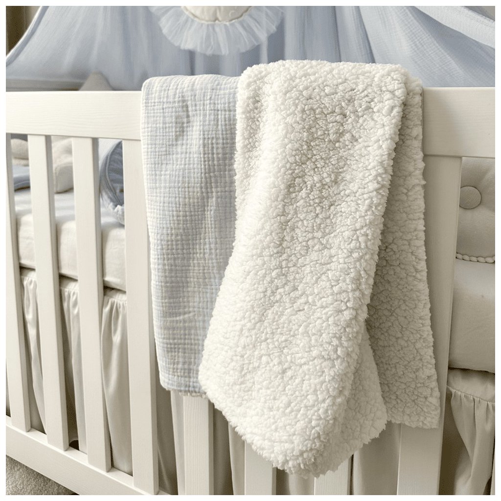 Obojstranná deka mušelín a umelá kožušina bledo modrá