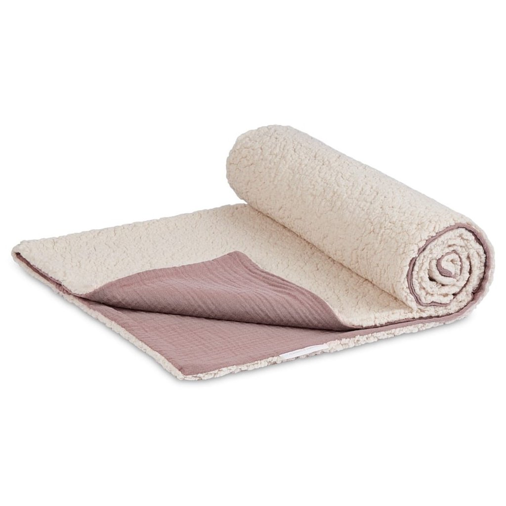 Obojstranná mušelínová deka - prehoz fialová je útulným doplnkom interiéru, ale aj hrejivou pokrývkou na chladnejšie večery.
