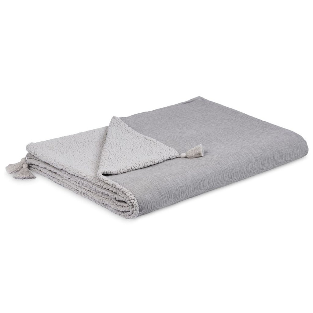 Obojstranná deka mušelín a umelá kožušina sivá melanž