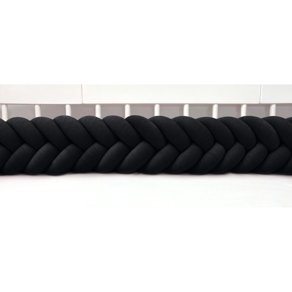 Plyšový ochranný zapletaný mantinel - pletenec päťkový slúži ako ochranca vášho dieťatka v postieľke a zároveň ako štýlový doplnok v detskej izbe. Pletenec má sadu ozdobných stúh na pripevnenie. Výška cca 22 cm, hrúbka cca 10 cm. Mantinel je dostupný v rôznych dĺžkach (od 120 cm do 400 cm). Všetky pramene sú vyrobené z kvalitného Prémium bavlneného velúru (certifikát Oeko Tex Standard 100) a ručne spletené do vrkoča. Záruka najvyššej kvality – 100% Handmade. Farba: čierna číslo vo vzorkovníku: 16.