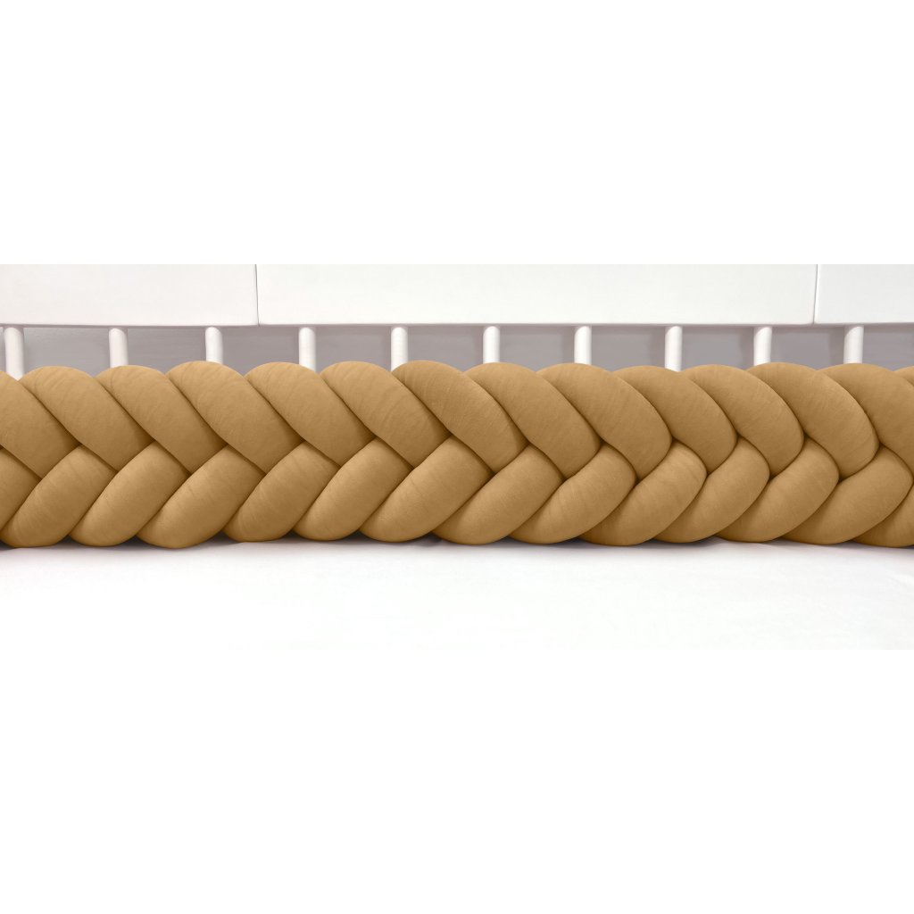 Plyšový ochranný zapletaný mantinel - pletenec päťkový slúži ako ochranca vášho dieťatka v postieľke a zároveň ako štýlový doplnok v detskej izbe. Pletenec má sadu ozdobných stúh na pripevnenie. Výška cca 22 cm, hrúbka cca 10 cm. Mantinel je dostupný v rôznych dĺžkach (od 120 cm do 400 cm). Všetky pramene sú vyrobené z kvalitného Prémium bavlneného velúru (certifikát Oeko Tex Standard 100) a ručne spletené do vrkoča. Záruka najvyššej kvality – 100% Handmade. Farba: škoricová, číslo vo vzorkovníku: 23.