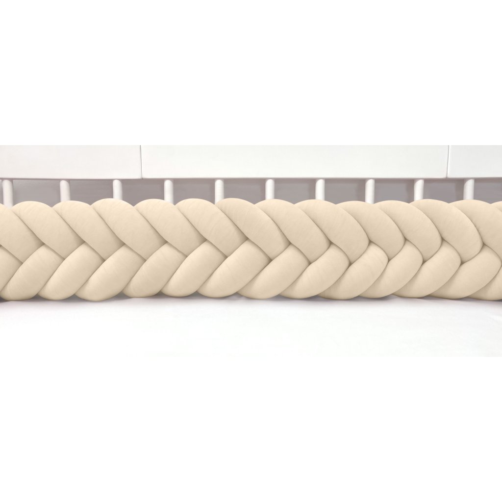 Plyšový ochranný zapletaný mantinel - pletenec päťkový slúži ako ochranca vášho dieťatka v postieľke a zároveň ako štýlový doplnok v detskej izbe. Pletenec má sadu ozdobných stúh na pripevnenie. Výška cca 22 cm, hrúbka cca 10 cm. Mantinel je dostupný v rôznych dĺžkach (od 120 cm do 400 cm). Všetky pramene sú vyrobené z kvalitného Prémium bavlneného velúru (certifikát Oeko Tex Standard 100) a ručne spletené do vrkoča. Záruka najvyššej kvality – 100% Handmade. Farba: smotanová, číslo vo vzorkovníku: 02.