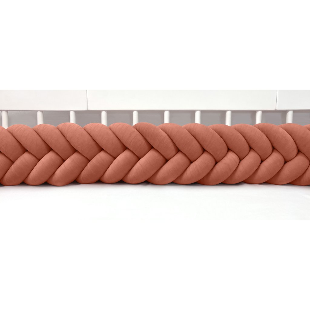 Plyšový ochranný zapletaný mantinel - pletenec päťkový slúži ako ochranca vášho dieťatka v postieľke a zároveň ako štýlový doplnok v detskej izbe. Pletenec má sadu ozdobných stúh na pripevnenie. Výška cca 22 cm, hrúbka cca 10 cm. Mantinel je dostupný v rôznych dĺžkach (od 120 cm do 400 cm). Všetky pramene sú vyrobené z kvalitného Prémium bavlneného velúru (certifikát Oeko Tex Standard 100) a ručne spletené do vrkoča. Záruka najvyššej kvality – 100% Handmade. Farba: tehlová, číslo vo vzorkovníku: 26.