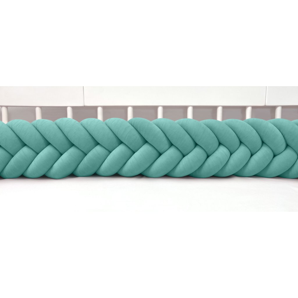 Plyšový ochranný zapletaný mantinel - pletenec päťkový slúži ako ochranca vášho dieťatka v postieľke a zároveň ako štýlový doplnok v detskej izbe. Pletenec má sadu ozdobných stúh na pripevnenie. Výška cca 22 cm, hrúbka cca 10 cm. Mantinel je dostupný v rôznych dĺžkach (od 120 cm do 400 cm). Všetky pramene sú vyrobené z kvalitného Prémium bavlneného velúru (certifikát Oeko Tex Standard 100) a ručne spletené do vrkoča. Záruka najvyššej kvality – 100% Handmade. Farba: tmavomätová, číslo vo vzorkovníku: 29.