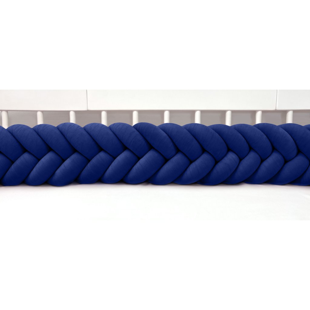 Plyšový ochranný zapletaný mantinel - pletenec päťkový slúži ako ochranca vášho dieťatka v postieľke a zároveň ako štýlový doplnok v detskej izbe. Pletenec má sadu ozdobných stúh na pripevnenie. Výška cca 22 cm, hrúbka cca 10 cm. Mantinel je dostupný v rôznych dĺžkach (od 120 cm do 400 cm). Všetky pramene sú vyrobené z kvalitného Prémium bavlneného velúru (certifikát Oeko Tex Standard 100) a ručne spletené do vrkoča. Záruka najvyššej kvality – 100% Handmade. Farba: tmavomodrá, číslo vo vzorkovníku: 30.