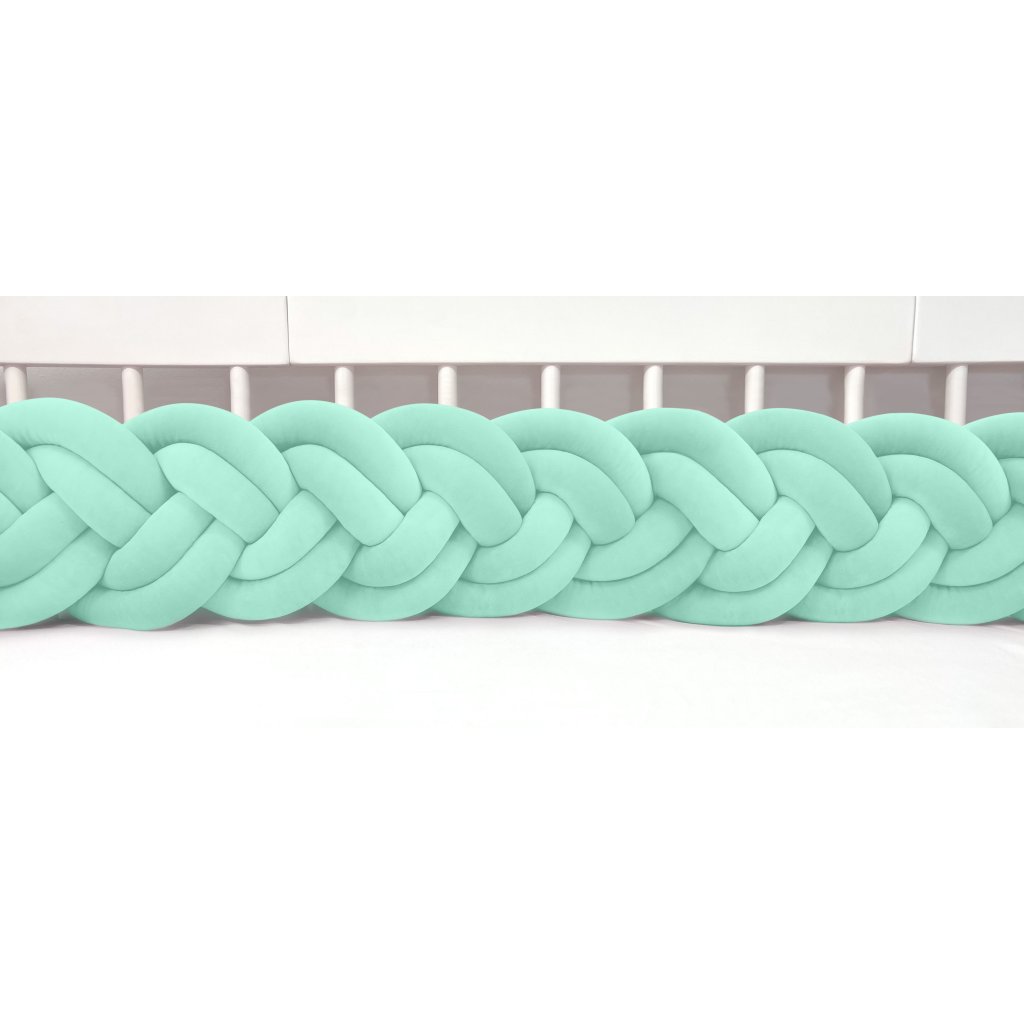 Plyšový ochranný zapletaný mantinel - pletenec šesťkový slúži ako ochranca vášho dieťatka v postieľke a zároveň ako štýlový doplnok v detskej izbe. Pletenec má sadu ozdobných stúh na pripevnenie. Výška cca 30 cm, hrúbka cca 10 cm. Mantinel je dostupný v rôznych dĺžkach (od 120 cm do 400 cm). Všetky pramene sú vyrobené z kvalitného Prémium bavlneného velúru (certifikát Oeko Tex Standard 100) a ručne spletené do vrkoča. Záruka najvyššej kvality – 100% Handmade. Farba: bledomätová, číslo vo vzorkovníku: 12.