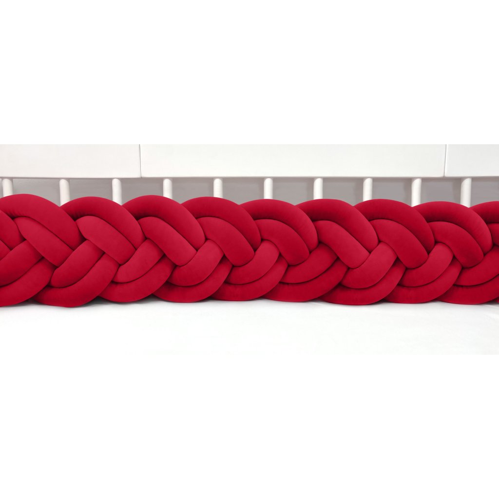 Plyšový ochranný zapletaný mantinel - pletenec šesťkový slúži ako ochranca vášho dieťatka v postieľke a zároveň ako štýlový doplnok v detskej izbe. Pletenec má sadu ozdobných stúh na pripevnenie. Výška cca 30 cm, hrúbka cca 10 cm. Mantinel je dostupný v rôznych dĺžkach (od 120 cm do 400 cm). Všetky pramene sú vyrobené z kvalitného Prémium bavlneného velúru (certifikát Oeko Tex Standard 100) a ručne spletené do vrkoča. Záruka najvyššej kvality – 100% Handmade. Farba: červený, číslo vo vzorkovníku: 11.