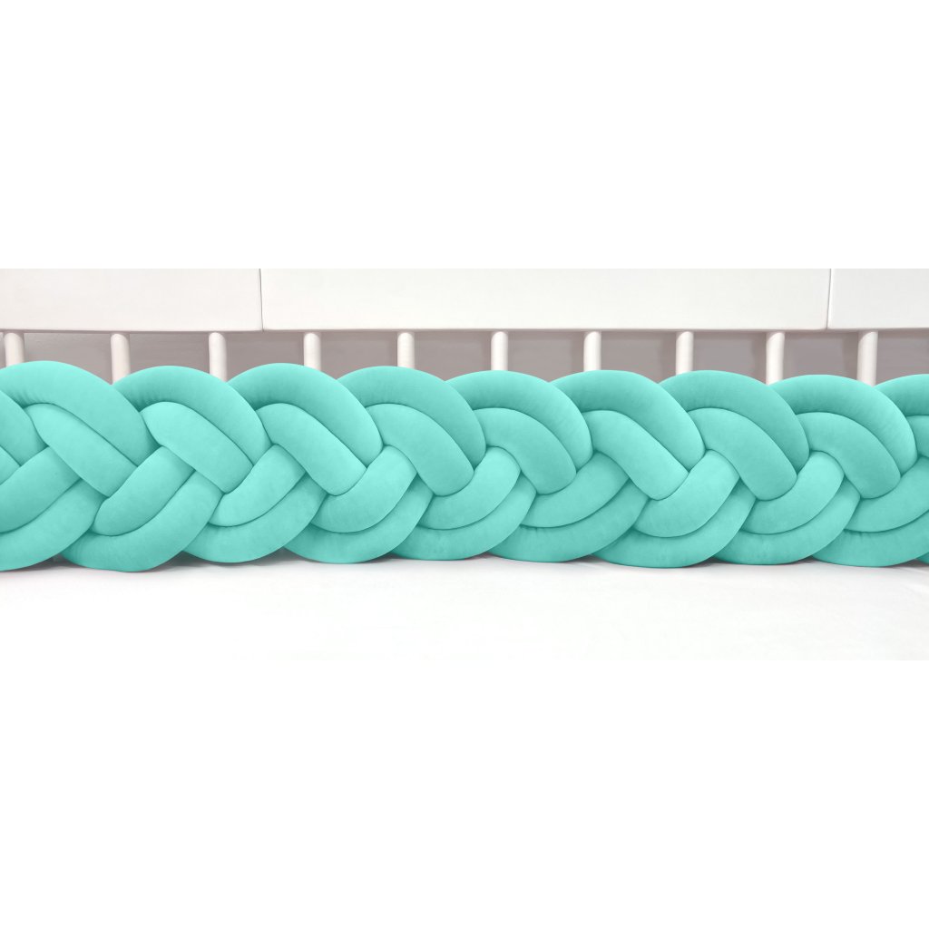 Plyšový ochranný zapletaný mantinel - pletenec šesťkový slúži ako ochranca vášho dieťatka v postieľke a zároveň ako štýlový doplnok v detskej izbe. Pletenec má sadu ozdobných stúh na pripevnenie. Výška cca 30 cm, hrúbka cca 10 cm. Mantinel je dostupný v rôznych dĺžkach (od 120 cm do 400 cm). Všetky pramene sú vyrobené z kvalitného Prémium bavlneného velúru (certifikát Oeko Tex Standard 100) a ručne spletené do vrkoča. Záruka najvyššej kvality – 100% Handmade. Farba: mätová, číslo vo vzorkovníku: 28.