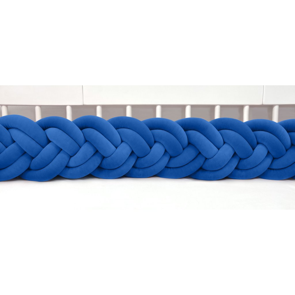 Plyšový ochranný zapletaný mantinel - pletenec šesťkový slúži ako ochranca vášho dieťatka v postieľke a zároveň ako štýlový doplnok v detskej izbe. Pletenec má sadu ozdobných stúh na pripevnenie. Výška cca 30 cm, hrúbka cca 10 cm. Mantinel je dostupný v rôznych dĺžkach (od 120 cm do 400 cm). Všetky pramene sú vyrobené z kvalitného Prémium bavlneného velúru (certifikát Oeko Tex Standard 100) a ručne spletené do vrkoča. Záruka najvyššej kvality – 100% Handmade. Farba: modrá, číslo vo vzorkovníku: 15.