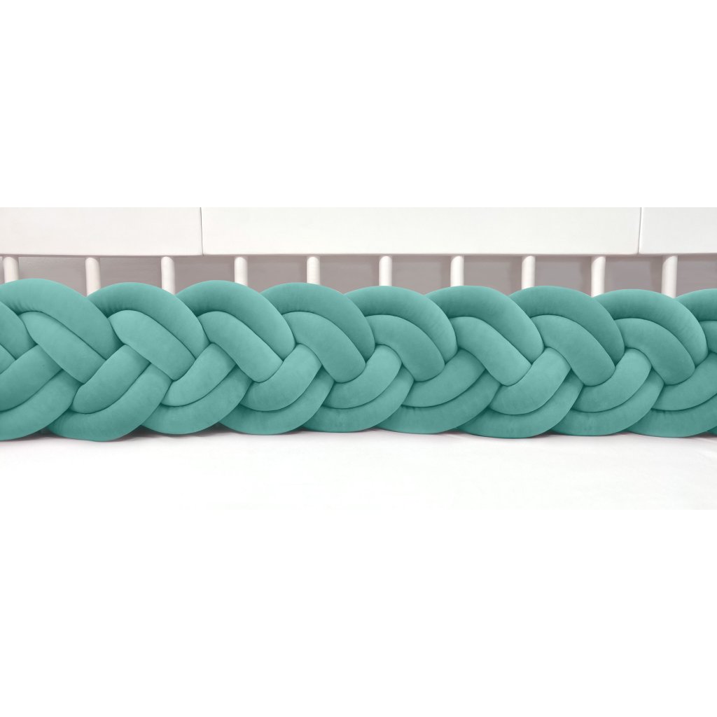 Plyšový ochranný zapletaný mantinel - pletenec šesťkový slúži ako ochranca vášho dieťatka v postieľke a zároveň ako štýlový doplnok v detskej izbe. Pletenec má sadu ozdobných stúh na pripevnenie. Výška cca 30 cm, hrúbka cca 10 cm. Mantinel je dostupný v rôznych dĺžkach (od 120 cm do 400 cm). Všetky pramene sú vyrobené z kvalitného Prémium bavlneného velúru (certifikát Oeko Tex Standard 100) a ručne spletené do vrkoča. Záruka najvyššej kvality – 100% Handmade. Farba: tmavomätová, číslo vo vzorkovníku: 29.
